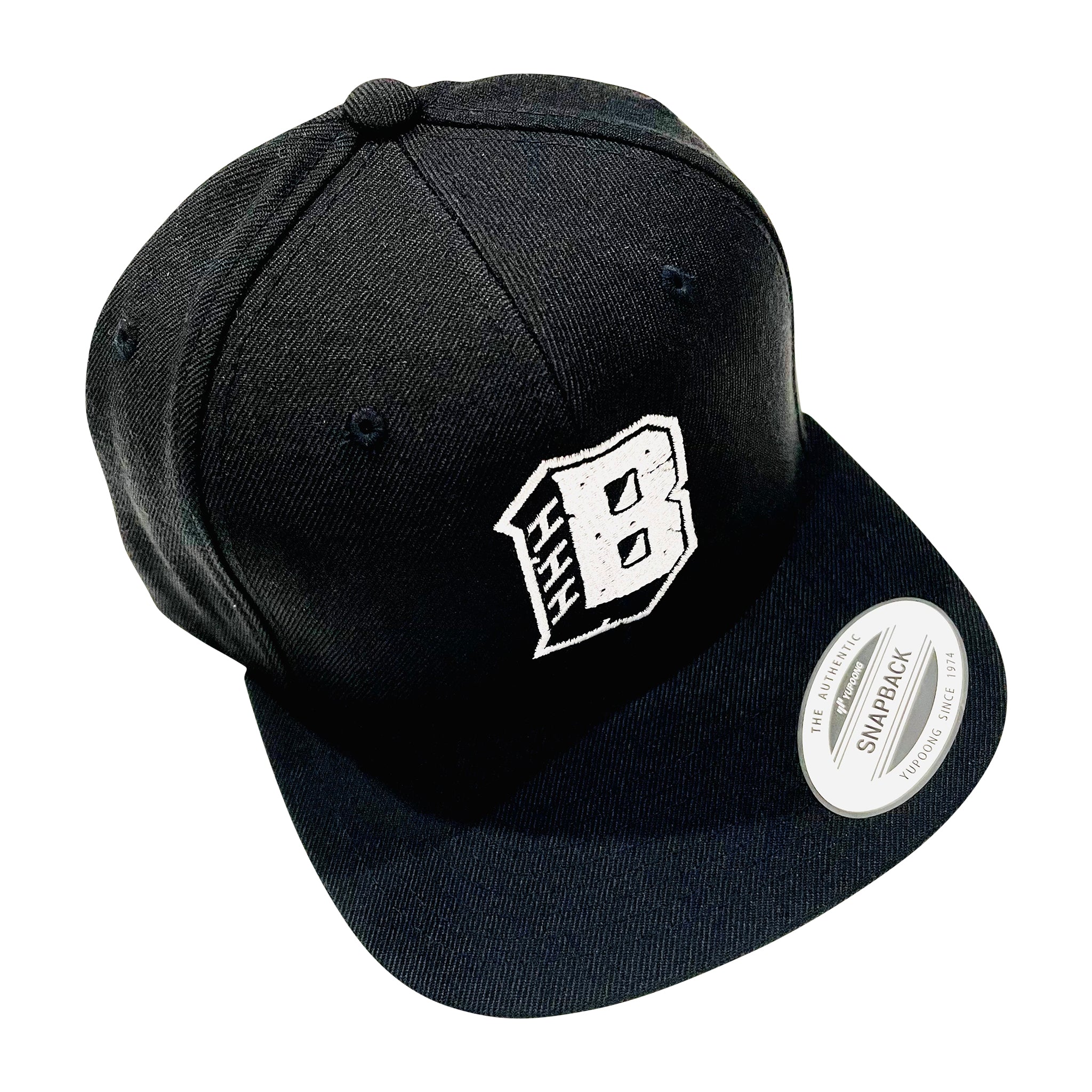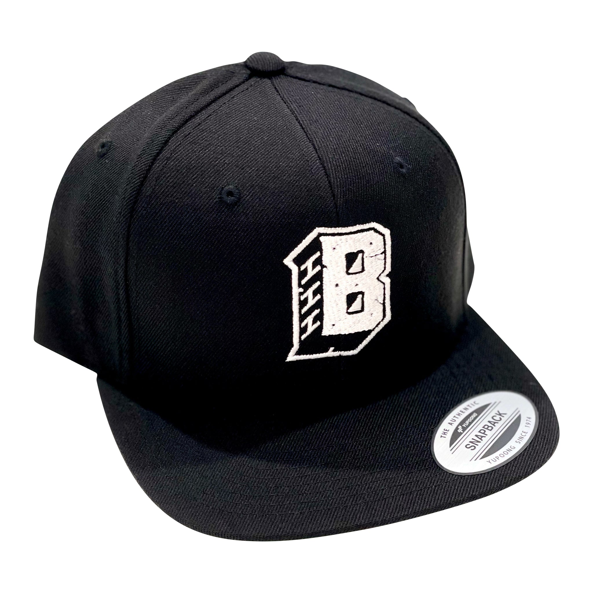 Our classic original snapback hat. This features our original “B” logo embroidered on the front panels in matching, tonal black and white embroidery.